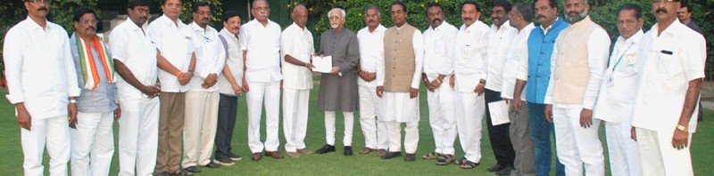 A delegation of Leaders from Andhra Pradesh calling on the Vice President, Shri M. Hamid Ansari and handing over a memorandum with regard to granting Special Category Status to Andhra Pradesh, in New Delhi on March 16, 2016.