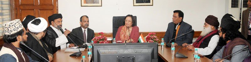 A delegation of Muslim Community led by Maulana Syed Kokab Mujtaba Abidi calling on the Union Minister for Minority Affairs, Dr. Najma A. Heptulla, in New Delhi on January 18, 2016.