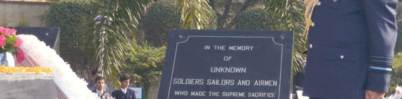 The Air Officer Commanding-in-Chief, Western Air Command, Air Marshal S.B. Deo paying homage to the martyrs at Shaheed Smarak, on the occasion of the Vijay Diwas, in Noida on December 27, 2016.
