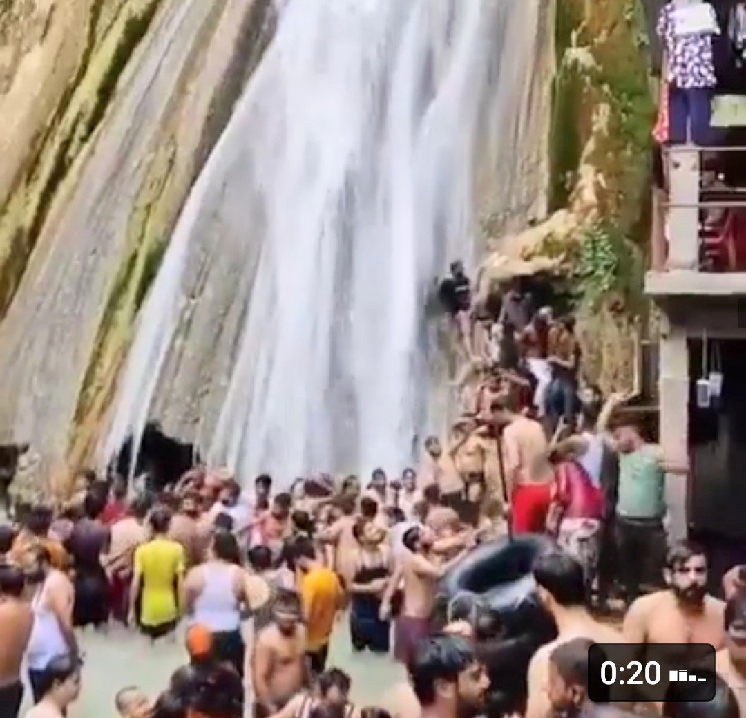 A video surfaced on social media yesterday where mass people are seeing enjoying their holidays at Kempty fall massourie,what is more surprising is the masks are missing and no social distancing observed.