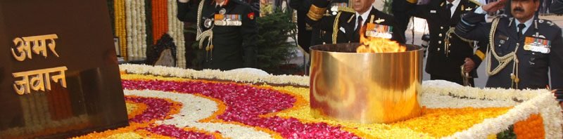 The Chief of Naval Staff, Admiral Sunil Lanba along with the Chief of Army Staff, General Dalbir Singh and the Chief of the Air Staff, Air Chief Marshal Arup Raha paying homage at the Amar Jawan Jyoti, India Gate, on the occasion of Navy Day, in New Delhi on December 04, 2016.