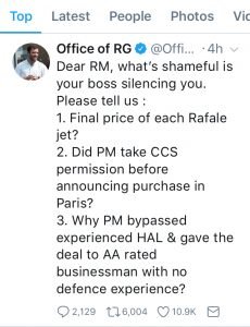 Dear RM ,IS YOUR BOSS SILENCING YOU?? – RAHUL GANDHI TO NIRMALA SITHARAMAN