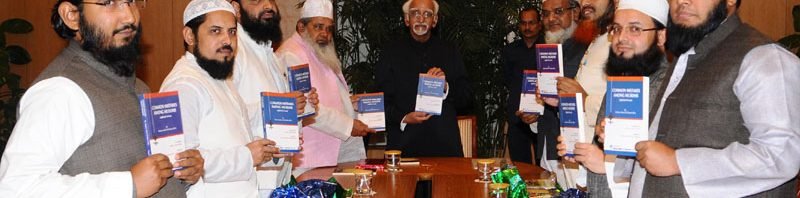 A delegation of Markazul Ma’arif Education and Research Centre led by the Member of Parliament, Shri M. Badruddin Ajmal presenting the book to the Vice President, Shri M. Hamid Ansari, in New Delhi on December 12, 2016.