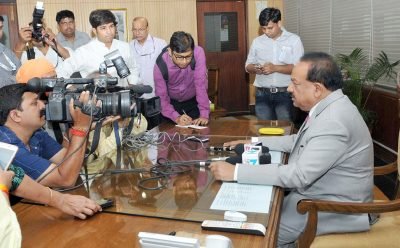 Dr. Harsh Vardhan interacting with the media after taking charge as the Minister of Environment, Forest and Climate Change, in New Delhi on May 22, 2017