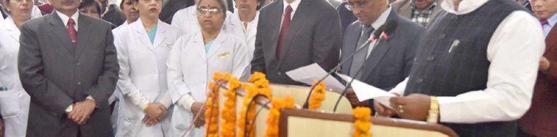The Minister of State for Health & Family Welfare, Shri Faggan Singh Kulaste administering the cleanliness pledge on the occasion of ‘Swachhta Pakhwara’, at AIIMS, New Delhi on February 06, 2017.