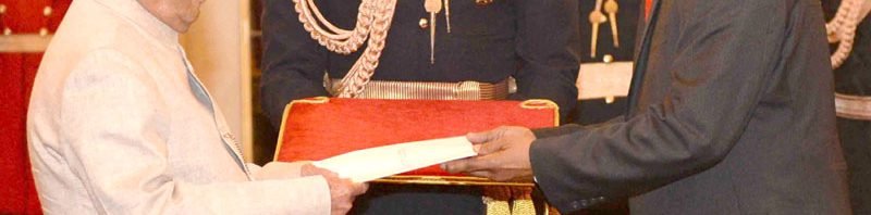 The High Commissioner-designate of Trinidad and Tobago, Mr. Dave Chandalal Persad presenting his credentials to the President, Shri Pranab Mukherjee, at Rashtrapati Bhavan, in New Delhi on November 30, 2016.