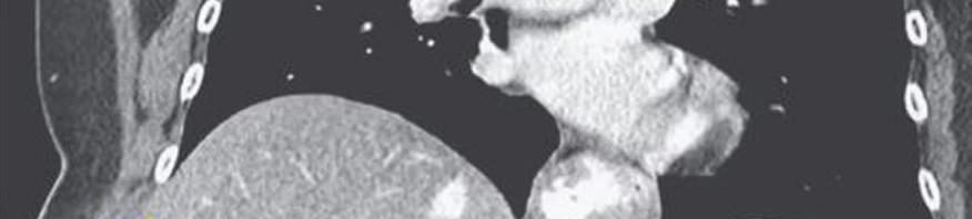 A woman with whooping cough broke her rib while coughing. On the left, an image of the large bruise that developed on the woman’s side. On the right, a CT scan image showing her fractured rib.