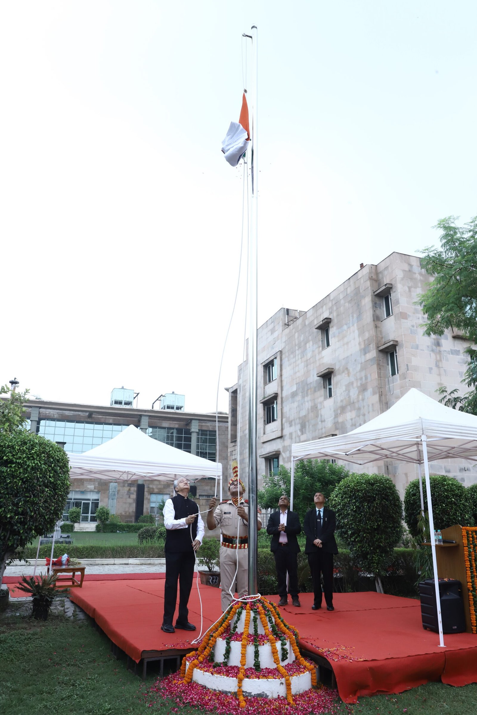 On the occasion of 79th Independence Day, the National flag was hoisted by Hon’ble Shri Justice Ajay Manikrao Khanwilkar, Chairperson, Lokpal of India, in the august presence of Hon’ble Members: Shri Justice Lingappa Narayana Swamy, Shri Justice Sanjay Yadav, Shri Sushil Chandra, Shri Justice Ritu Raj Awasthi, Shri Pankaj Kumar and Shri Ajay Tirkey. He extended greetings of Independence Day to all Hon’ble Members, Senior Officers, Staff and Family Members.