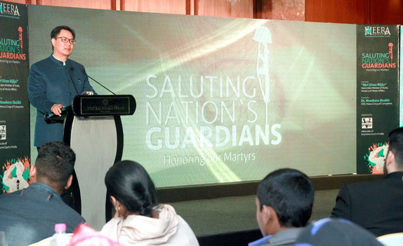 Kiren Rijiju addressing at a function to honour the families of the Martyrs of Uri attack