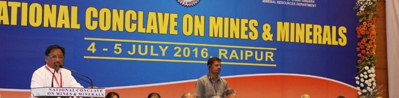 The Minister of State for Mines and Steel, Shri Vishnu Deo Sai addressing at the inauguration of the National Conclave on Mines and Minerals, in Raipur, Chhattisgarh on July 04, 2016. The Union Minister for Mines and Steel, Shri Narendra Singh Tomar, the Chief Minister of Chhattisgarh, Dr. Raman Singh, the Secretary, Ministry of Mines, Shri Balvinder Kumar and other dignitaries are also seen.