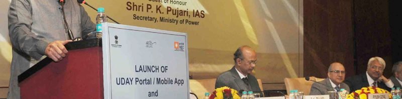 The Minister of State for Power, Coal, New and Renewable Energy and Mines (Independent Charge), Shri Piyush Goyal addressing at the launch of the Web Portal and a Mobile App for the Ujwal DISCOM Assurance Yojana (UDAY), organised by the Rural Electrification Corporation Limited (REC), in New Delhi on January 04, 2017. The Secretary, Ministry of Power, Shri P.K. Pujari and other dignitaries are also seen.