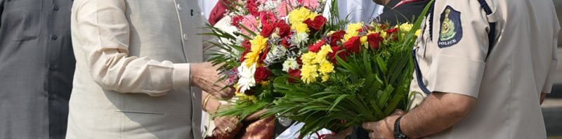 Narendra Modi being received by the Governor of Goa, Smt. Mridula Sinha