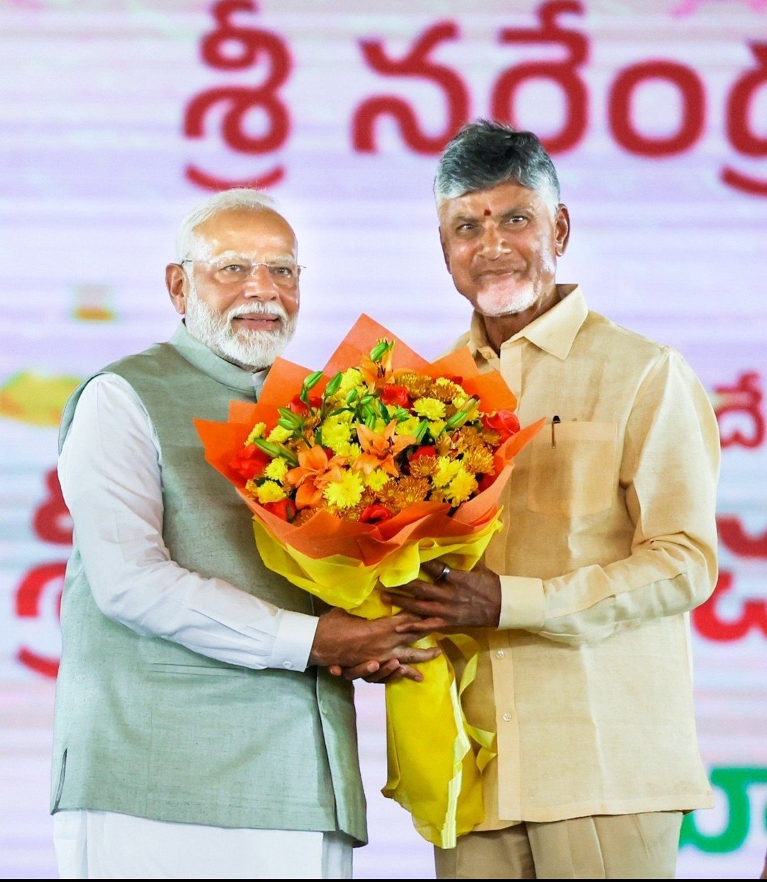 “Attended the oath taking ceremony of the new Andhra Pradesh Government. Congratulations to Shri N Chandrababu Naidu Garu on becoming the Chief Minister and also to all the others who took oath as Ministers in the Government. The TDP, Jana Sena and BJP Government is fully committed to taking AP to new heights of glory and fulfilling the aspirations of the state’s youth.”