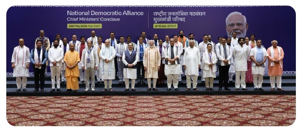 The Prime Minister Shri Narendra Modi chaired the NDA Chief Ministers’ Conclave in Delhi today. He emphasised the need to add momentum to our development trajectories and ensure the benefits of a double-engine government reach the people in an effective manner.