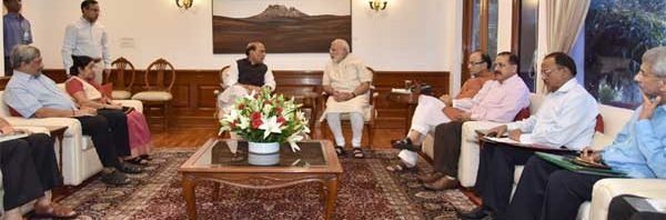 Home Minister Rajnath Singh, Finance Minister Arun Jaitley, Defence Minister Manohar Parrikar, External Affairs Minister Sushma Swaraj, Minister of State in the PMO Jitendra Singh, National Security Advisor Ajit Doval were present at the meeting at 7 Race Course Road, the Prime Minister’s House, here.