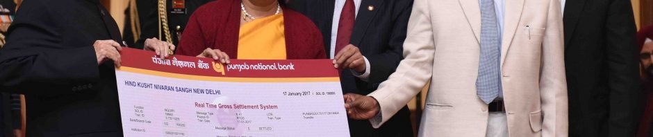 Smt. Usha Ananthasubramanian, Managing Director & CEO, Punjab National Bank presented a cheque to Hon’able President, Sh Pranab Mukherji at Rashtrapati Bhawan as a helping hand towards eradication of leprosy. Sh. K V Brahmaji Rao, Dr. R S Sangapure and Shri Sanjiv Sharan, Executive Directors were also present on the occasion along with the executives of Hind Kusht Nivaran Sangh.