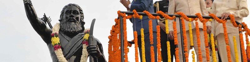 The President, Shri Ram Nath Kovind paying floral tribute at the Statue of Shri Alluri Sitarama Raju, at Visakhapatnam, in Andhra Pradesh on December 07, 2017. The Governor of Andhra Pradesh and Telangana, Shri E.S.L. Narasimhan and the Chief Minister of Andhra Pradesh, Shri N. Chandrababu Naidu are also seen
