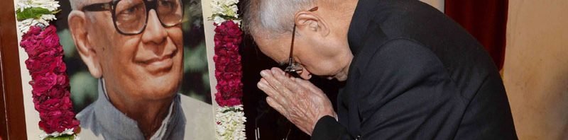 The President, Shri Pranab Mukherjee paying homage at the portrait of the former President, Shri R. Venkataraman, on his Birth Anniversary, at Rashtrapati Bhavan, in New Delhi on December 04, 2016.