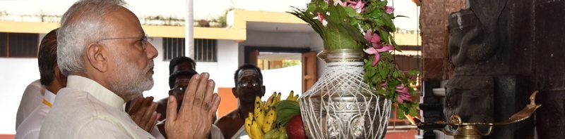The Prime Minister, Shri Narendra Modi offering prayers at Sreekanteswara Temple, in Kozhikode, Kerala on September 25, 2016