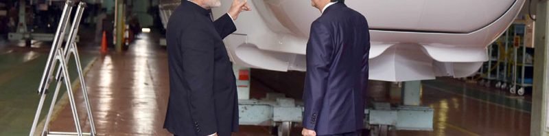 The Prime Minister, Shri Narendra Modi with the Prime Minister of Japan, Mr. Shinzo Abe at the Kawasaki Heavy Industries (KHI) Hyogo Plant, in Kobe, Japan on November 12, 2016