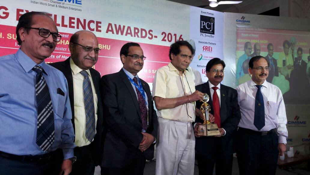 (i) Seen in the picture Sh. Mukesh Kumar Jain, Executive Director, Punjab & Sind Bank receiving the award for Financial Inclusion from Sh. Suresh Prabhakar Prabhu,Hon’ble Union Minister for Railways. Other senior executives from Bank & CIMSME are also seen in the picture.