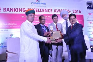 Punjab & Sind Bank has been awarded two Banking Excellence Awards for outstanding performance of the Bank for (1) Financial Inclusion through BC Model, and (2) Contribution to Micro Credit, at a function held by Chamber of Indian Micro Small and Medium Enterprises (CIMSME). The award function was graced by Hon’able Union Ministers Sh Suresh Prabhakar Prabhu, Sh Arjun Ram Meghwal and Sh. Mukhtar Abbas Naqvi.