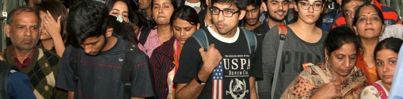 Stranded people airlifted from Tambaram air base, near Chennai following heavy rains, de-boarding an Indian Air Force aircraft at Air Force Station, Palam, in New Delhi on December 03, 2015