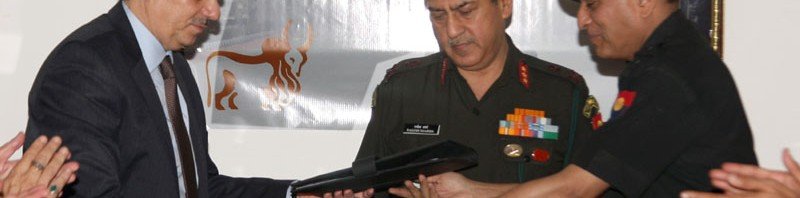 The Adjutant General, Lt. Gen. Rakesh Sharma witnessing the signing of a Memorandum of Understanding (MoU) between the Indian Army and IndusInd Bank on the Defence Salary Package, in New Delhi on March 03, 2016