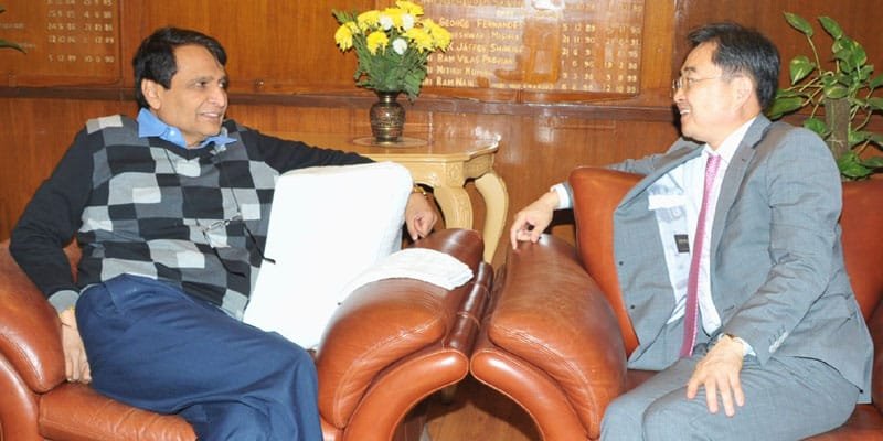 The Ambassador of the Republic of Korea to India, Mr. CHO Hyun meeting the Union Minister for Railways, Shri Suresh Prabhakar Prabhu, in New Delhi on December 16, 2015.