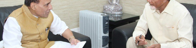 The Chief Minister of Andhra Pradesh, Shri N. Chandrababu Naidu calling on the Union Home Minister, Shri Rajnath Singh, in New Delhi on March 10, 2016.