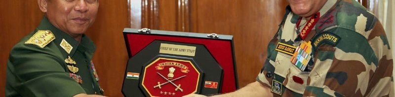 The Chief of Army Staff, General Bipin Rawat and the Commander-in-Chief of the Myanmar Defence Services, Sr. Gen. U Min Aung Hliang exchanging the memento, in New Delhi on July 14, 2017.