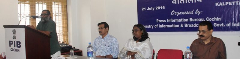 The former Editor, Mathrubhumi Books, Shri Johny O.K. addressing at the Regional Media workshop “VARTALAP”, organised by the Press Information Bureau, Cochin, at Kalpetta, in Kerala on July 21, 2016