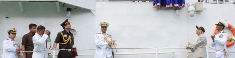 The Governor of West Bengal, Shri Keshari Nath Tripathi unveiling the Ship’s Plaque in the presence of Inspector General, K.R. Nautiyal, Commander Coast Guard Region (North East), on the occasion of commissioning of ICGS Anmol, at Khidirpur Dock, Kolkata on October 15, 2015