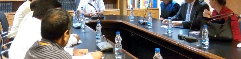 The Minister for Justice, Courts, Communications & Broadcasting, New Zealand, Ms. Amy Adams along with a delegation calling on the Union Minister for Law & Justice, Shri D.V. Sadananda Gowda, in New Delhi on September 22, 2015