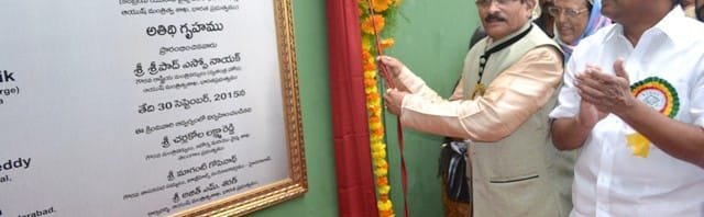 The Minister of State for AYUSH (Independent Charge) and Health & Family Welfare, Shri Shripad Yesso Naik unveiling the plaque to inaugurate the Guest House, at Central Research Institute of Unani Medicine, in Hyderabad on September 30, 2015.