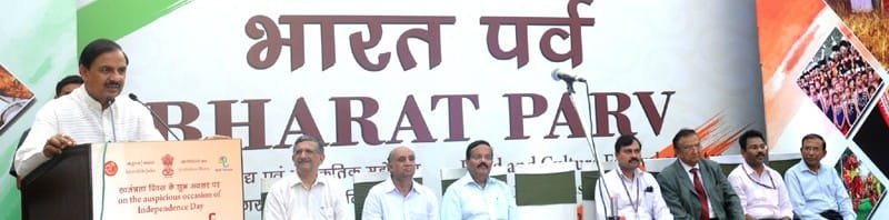 The Minister of State for Culture (Independent Charge), Tourism (Independent Charge) and Civil Aviation, Dr. Mahesh Sharma addressing at the inauguration of the “Bharat Parv” a celebration of Culture & Cuisine from different states of India as part of the Independence Day celebrations from 3rd to 15th August 2015, in New Delhi on August 03, 2015.