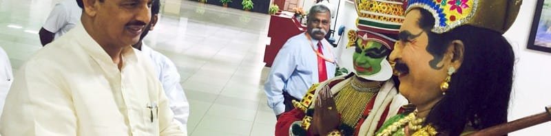 The Minister of State for Culture (Independent Charge), Tourism (Independent Charge) and Civil Aviation, Dr. Mahesh Sharma being welcomed by the artists, at Thiruvananthapuram Airport on August 30, 2015.