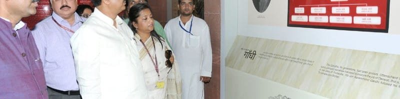 The Minister of State for Culture (Independent Charge), Tourism (Independent Charge) and Civil Aviation, Dr. Mahesh Sharma visiting the exhibition at Gandhi Smriti on the occasion of 146 Birth Anniversary of Mahatma Gandhi, in New Delhi on October 02, 2015.