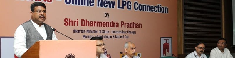 The Minister of State for Petroleum and Natural Gas (Independent Charge), Shri Dharmendra Pradhan addressing at the launch of the e-SV-Sahaj-Online release of LPG connections, in New Delhi on August 30, 2015. The Secretary, Ministry of Petroleum and Natural Gas, Shri K.D. Tripathi and other dignitaries are also seen
