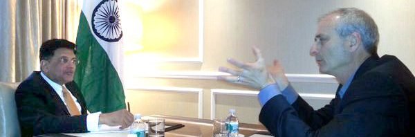 The Minister of State (Independent Charge) for Power, Coal and New and Renewable Energy, Shri Piyush Goyal meeting the President and CEO of BigBelly Solar, Mr. Jack Kutner, in New York on April 21, 2016.