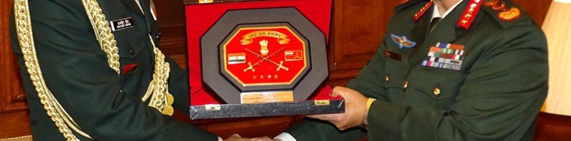 The Nepalese Army Chief, General Rajendra Chhetri and the Chief of Army Staff, General Dalbir Singh exchanging the memento, in New Delhi on February 02, 2016.