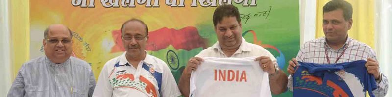 The President, Indian Olympic Association (IOA), Shri N. Ramachandran presented the Olympic Kit (Non Playing) to the Minister of State for Youth Affairs and Sports (I/C), Water Resources, River Development and Ganga Rejuvenation, Shri Vijay Goel, in New Delhi on July 14, 2016.