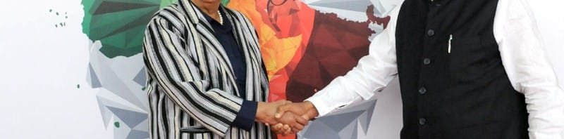 The President of Liberia, Ms. Ellen Johnson Sirleaf being received by the Minister of State for Heavy Industries & Public Enterprises, Shri G.M. Siddeshwara, on his arrival, in New Delhi on October 27, 2015