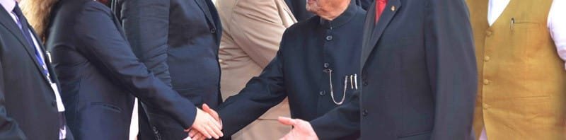 The President of the Republic of Seychelles, Mr. James Alix Michel introducing the President, Shri Pranab Mukherjee and the Prime Minister, Shri Narendra Modi to the Seychelles delegation, at the Ceremonial Reception, at Rashtrapati Bhavan, in New Delhi on August 26, 2015