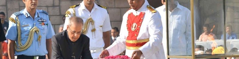 The President, Shri Pranab Mukherjee paying floral tributes at the Samadhi of Mahatma Gandhi on his 146th birth anniversary, at Rajghat, in Delhi on October 02, 2015