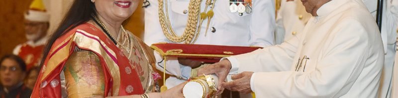 The President, Shri Pranab Mukherjee presenting the Padma Shri Award to Dr. Anuradha Paudwal, at a Civil Investiture Ceremony, at Rashtrapati Bhavan, in New Delhi on March 30, 2017.