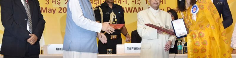 The President, Shri Pranab Mukherjee presenting the Rajat Kamal Award to the Producer: Auto Driver, Rep: Ms. Longjam Meena Devi for Best Film on Social Issues, in Non-Feature Film Section, at the 63rd National Film Awards Function, in New Delhi on May 03, 2016. The Union Minister for Finance, Corporate Affairs and Information & Broadcasting, Shri Arun Jaitley, the Minister of State for Information & Broadcasting, Col. Rajyavardhan Singh Rathore and the Secretary, Ministry of Information & Broadcasting, Shri Ajay Mittal are also seen.