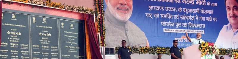 The Prime Minister, Shri Narendra Modi addressing the gathering at a function, in Sahibganj, Jharkhand on April 06, 2017.