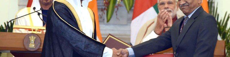The Prime Minister, Shri Narendra Modi and the Crown Prince of Abu Dhabi, His Highness Sheikh Mohammed Bin Zayed Al Nahyan witnessing the exchange of an MoU, at Hyderabad House, in New Delhi on February 11, 2016.