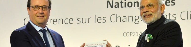 The Prime Minister, Shri Narendra Modi and the President of France, Mr. Francois Hollande at launch of the International Solar Alliance, during the COP21 Summit, in Paris, France on November 30, 2015.